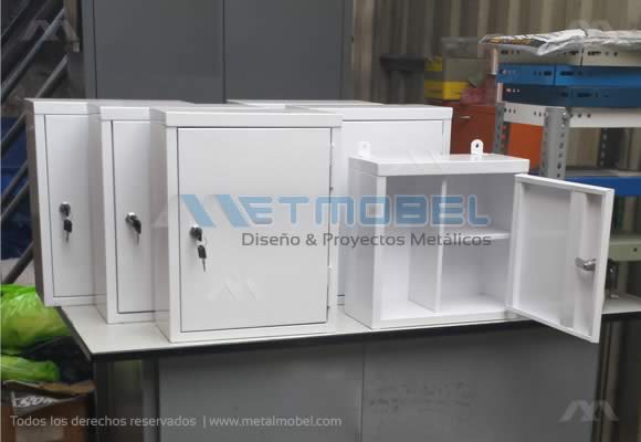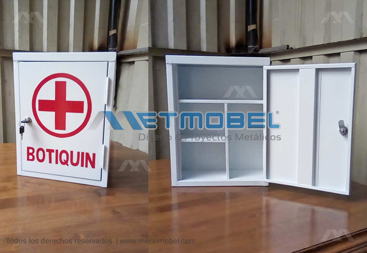 Un botiquín metálico es un contenedor diseñado para almacenar suministros médicos y de primeros auxilios. Estos botiquines pueden ser fabricados en metal que son los más comunes, debido a su durabilidad y resistencia, botiquín de pared con llave, fabricado en chapa de acero lacado en color blanco.