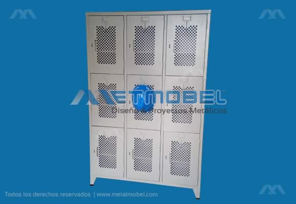 Los lockers con puertas perforadas son un tipo de mueble de almacenamiento que se utiliza para guardar y asegurar objetos personales, prendas de vestir y otros artículos en espacios como gimnasios, escuelas, empresas, vestuarios y otros entornos similares.